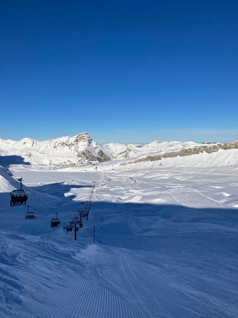 Der Vibe in Melchsee-Frutt war ruhig und bodenständig. Ich merkte sofort, dass das Gebiet nicht auf Luxus oder Reichtum ausgerichtet war, sondern klar auf familiären Wintersport. Statt teurer Boutiquen und Luxushotels prägten Ferienhäuser und die malerischen Berge das Skigebiet, wodurch der Wintersport eindeutig im Vordergrund stand. Trotz der eher schlichten Ausrichtung bot Melchsee-Frutt sehr schöne Wintersporterlebnisse. Die Pisten waren gut präpariert, die Anlagen übersichtlich und die Atmosphäre angenehm entspannt, ganz ohne großen Trubel. Besonders Familien, Anfänger und Genussfahrer fühlten sich hier wohl, und auch ich empfand das Gebiet als sehr angenehm. Zudem gab es für Nicht-Skifahrer viele Angebote wie Winterwandern, Langlaufen, Schneeschuhlaufen oder Schlitteln. Im Vergleich zu großen und exklusiven Skigebieten war Melchsee-Frutt deutlich kinderfreundlicher und dadurch besonders attraktiv für Familien, Schulklassen und jüngere Besucher.